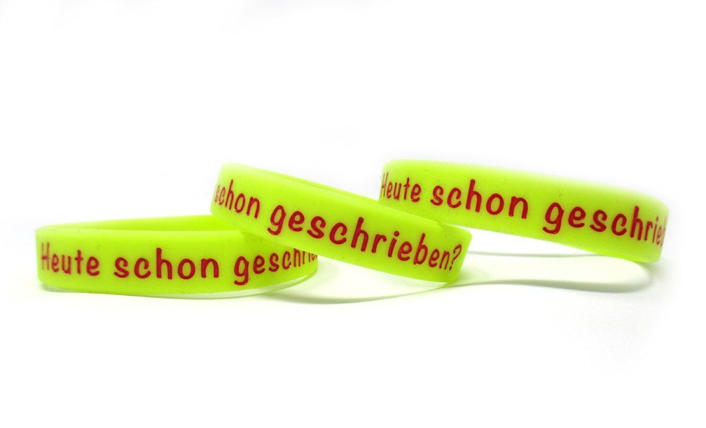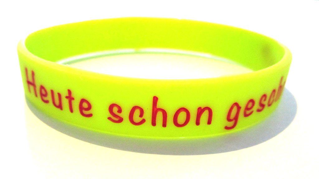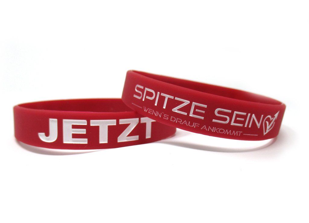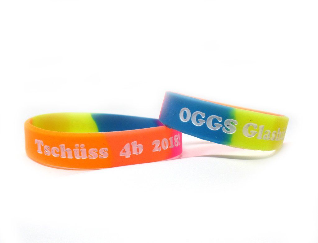 Wir produzieren die tiefgeprägten & farbgefüllten Silikonarmbänder in verschiedenen Größen, je nach Altersgruppe und Anwendungsgebiet.